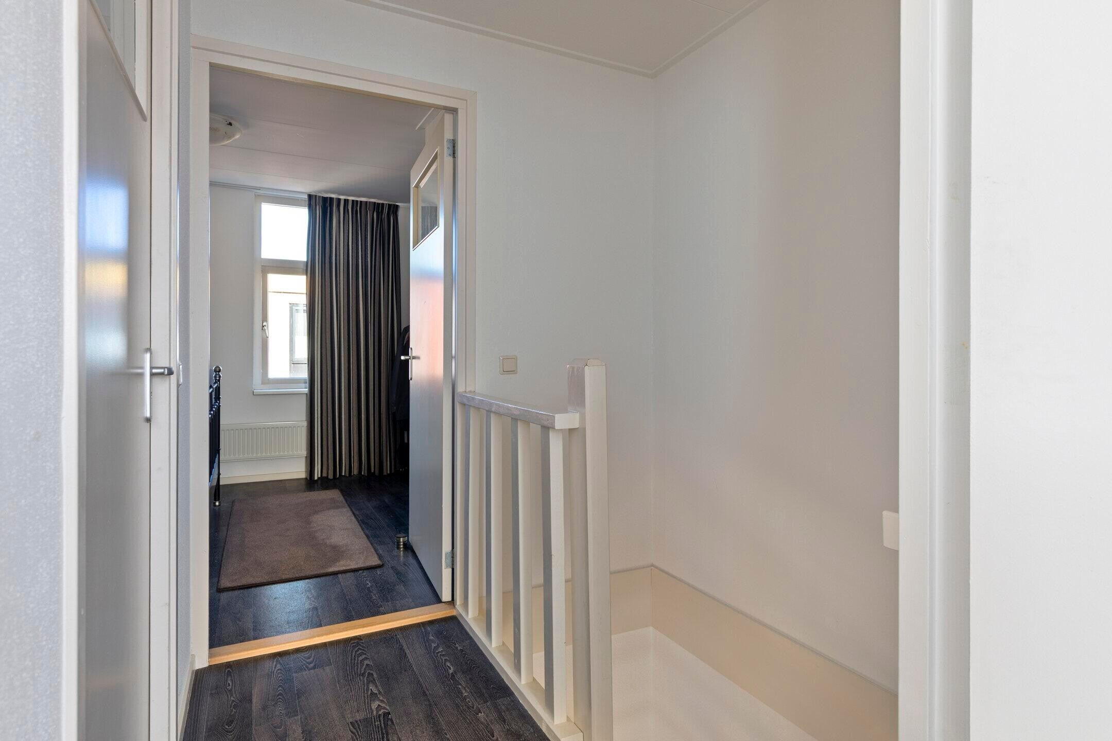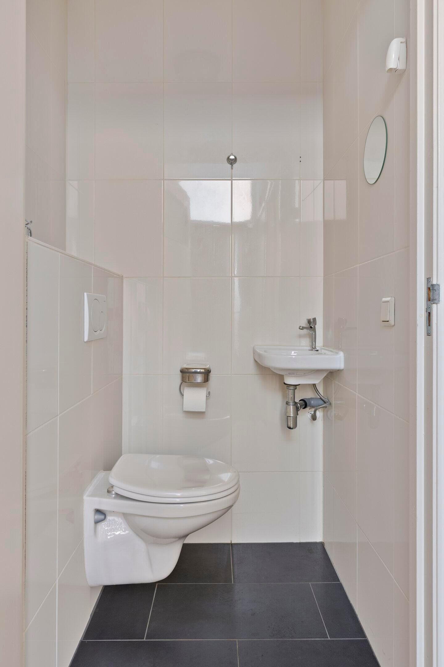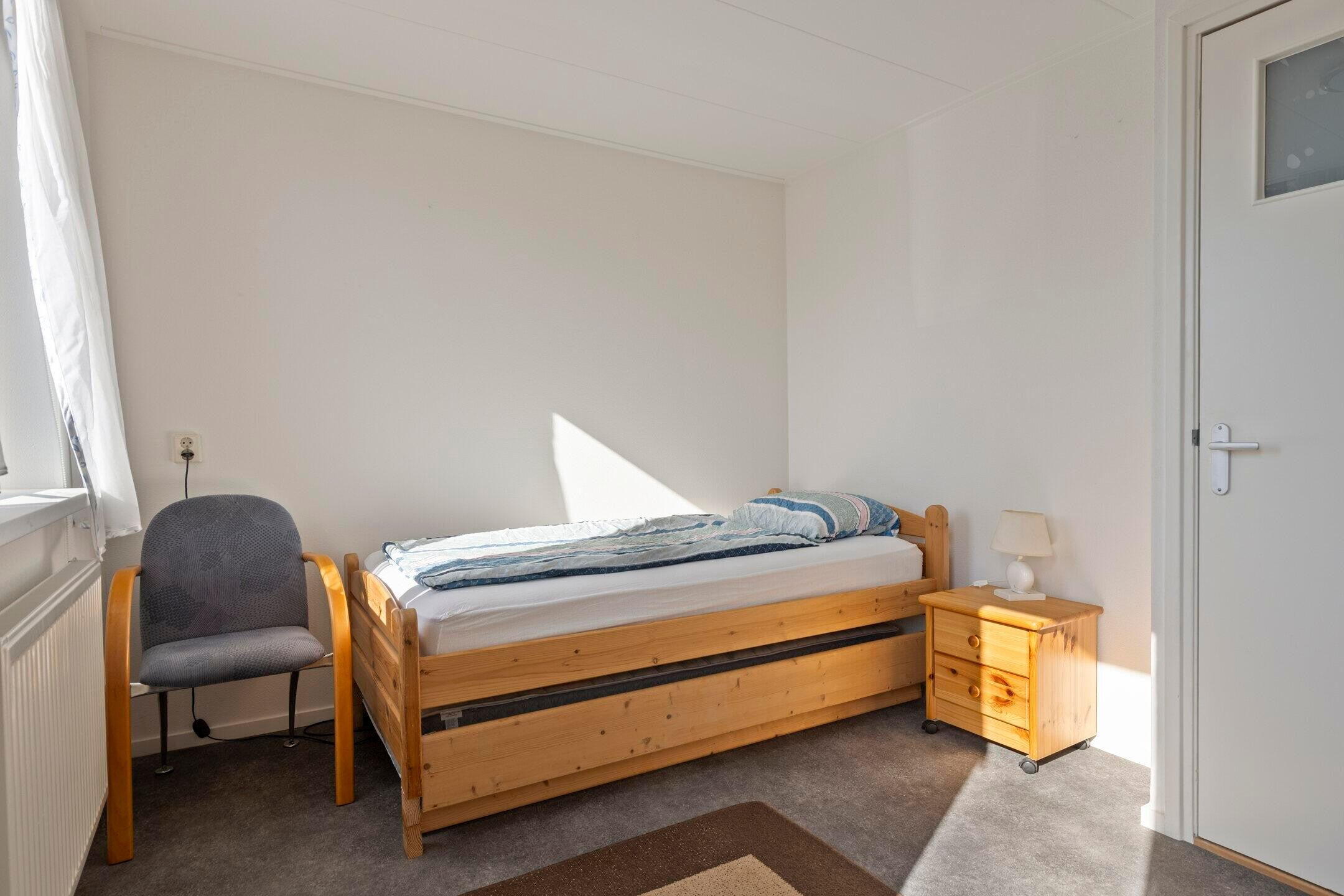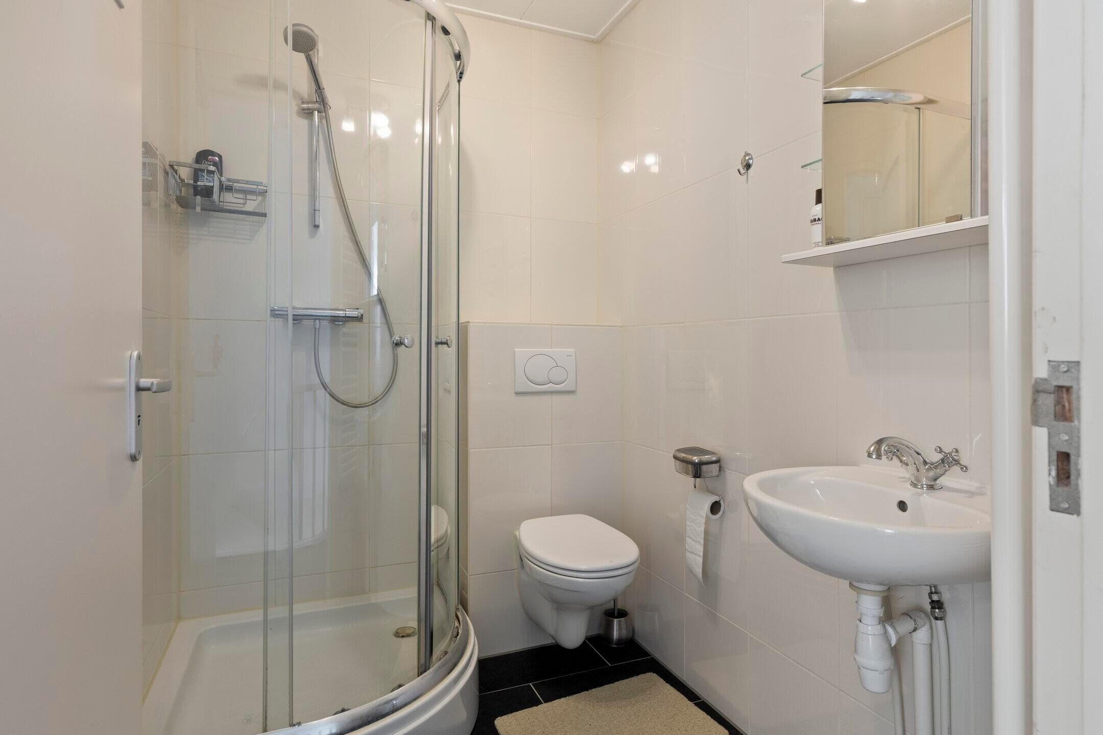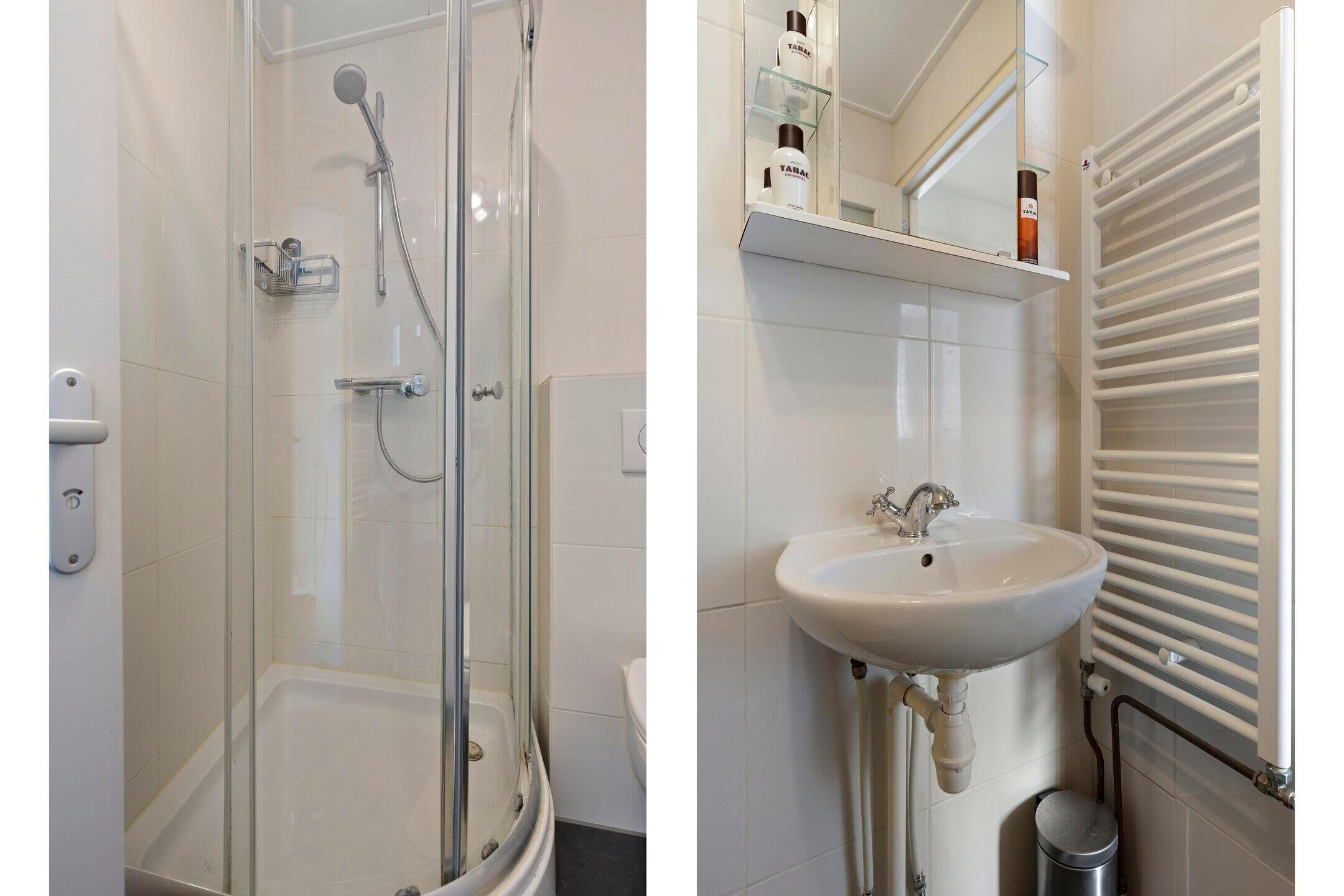 Op de eerste verdieping bevinden zich twee slaapkamers en de badkamer. Beide slaapkamers zijn goed van formaat en beschikken over voldoende daglicht. De badkamer is compact maar compleet en voorzien van een douche, toilet en wastafel. De afwerking is netjes en functioneel.